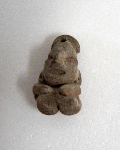 Editor: This small, ancient sculpture titled "Miniature figurine" by Tlatilco, made around 1500 using earthenware, strikes me as incredibly raw and enigmatic. What layers do you see beneath this simple, earthy form? Curator: The figurine’s crude nature is precisely its power. Notice how the features, though simple, are deeply evocative. These images acted as powerful links between the living and the spirit world. Consider what this small ceramic portrait might have meant to the people who created and used it. Editor: Spirit world... so it's a talisman? The minimalist carving is thought-provoking; it invites a projection of emotions and inner meanings, don't you think? Curator: Precisely! The roughly hewn nature doesn’t detract; rather it amplifies the feeling. Faces, even simple ones, function as powerful mnemonic devices. Ask yourself what memories or beliefs this form may have embodied. It's fascinating how this ceramic figure embodies psychological and spiritual power. How do you perceive its purpose within its cultural context? Editor: That's a beautiful idea, thank you. Thinking about how simple forms evoke powerful memories… Curator: Visual cues and patterns – a subtle nose shape, an elliptical eye— are symbolic short cuts, reminding the Tlatilco people of ancestors, nature deities, or even a certain view of self. Each indentation probably encoded narratives about continuity and belief. Editor: So, through this tangible form, history and personal stories were preserved! Curator: Yes, symbols, carefully molded, act as visual bridges between the seen and unseen realms. These images held an immediate connection. This simple form invites us to think deeply about the psychological role of representation.