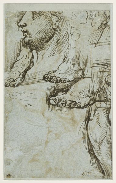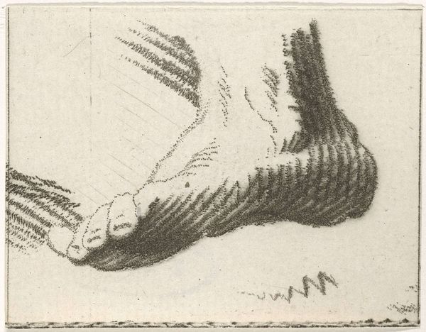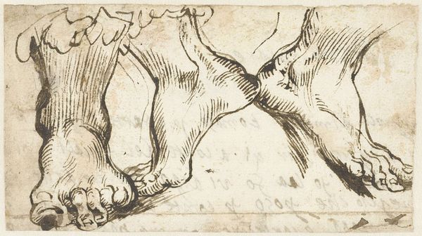 Agostino Carracci rendered this study of a right foot with pen and brown ink, likely in the late 16th century. During the Renaissance, the human body became a focal point for artistic and intellectual exploration. Carracci's detailed study reflects the era's emphasis on anatomical accuracy and its rediscovery of classical ideals. Feet, often overlooked, bear the weight of our histories and social positions. This foot, rendered with such care, prompts us to consider the labor it performs and the journeys it undertakes. Renaissance art often served the interests of the elite, but this image also holds the potential to reflect upon the lives of those whose bodies were the tools of their trade. Consider the emotional weight carried by this seemingly simple study. It is in the close observation of such details that we may find a deeper understanding of the individuals and societies of the past.