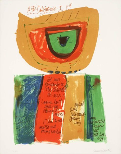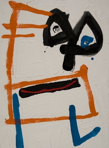 Curator: This is an Untitled acrylic on canvas work by Paul du Toit, created in 2010. What's your initial take? Editor: Woah, total fragmented face vibes! Like if Picasso and Basquiat had a love child. It's a bit unsettling, with those bold outlines and the wonky geometry. Feels like a raw, almost primal scream on canvas, doesn't it? Curator: It definitely evokes strong emotions. Du Toit’s style often draws from both Pop Art and abstract expressionism, creating these deliberately crude, caricature-like figures. He used bold colours here - yellow, orange, reds, greens. How do these colours play on your perception of primal screams? Editor: Well, primal screams are messy, right? Untamed. Yellow has this sort of anxious energy, especially juxtaposed with that melancholic orange in the eye-like shape at the top. Red's the raw nerve. The bright, almost cartoonish hues are juxtaposed by the dark black that both bind and separate the individual aspects of this supposed 'face'. So it feels playful, but deeply unnerving, like a clown's sad, dark secret. Curator: It is the tension. Looking through a psychological lens, those fragmented shapes could represent fractured identity. Perhaps referencing psychological trauma and the disjointed self. Do you sense any historical echo? Editor: Absolutely! This recalls a bit of that Dadaist disruption, especially the way it rejects conventional representation, mirroring that post-WWI disillusionment. It's as if the artist is saying, "Hey, reality's shattered, and art should reflect that chaos!". Also, this abstract pop-art feel could be a reference to cultural memory and modern identity in the late 20th century. Curator: An eloquent observation! So we have moved through the historical, psychological and expressive values of the piece. Editor: Absolutely! The way those clashing shapes somehow harmonize creates a really unique tension that resonates long after you've walked away from it. It will sit with you and stir thoughts. Curator: Indeed. This piece showcases how contemporary artworks often operate as visual time capsules.
