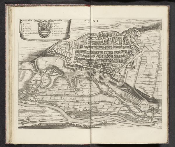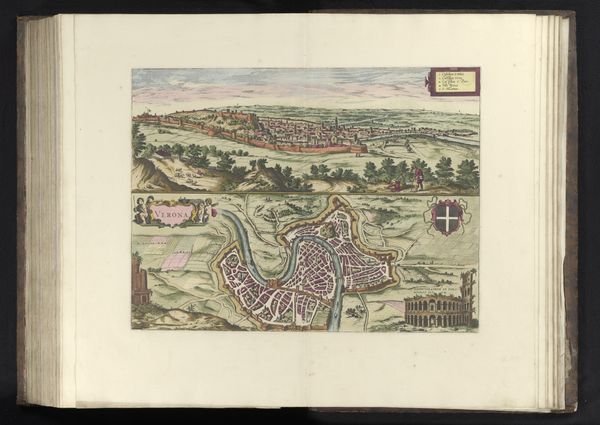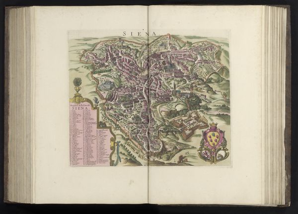 This is an untitled bird's-eye view of Rimini, made by an anonymous artist. It is an engraving in book form. What strikes you first about this view of Rimini is the formal arrangement of space. Notice how the city's structure is carefully laid out, with buildings and streets resembling geometric patterns. The composition employs a bird's-eye perspective, offering a comprehensive overview that flattens depth and emphasizes two-dimensional design. The subdued color palette reinforces this formal approach, with muted tones creating a sense of distance and order. Here, representation challenges fixed meanings. The map invites us to consider how cities are not merely physical spaces but also constructs of power, knowledge, and visual encoding. In this way, the artwork challenges established ways of thinking about space, perception, and representation.