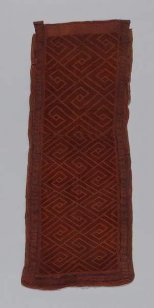 Editor: Here we have a Chancay Loincloth Panel, potentially dating from between 1000 and 1476. The materials are listed as fibre art, weaving and textile. It’s strikingly well-preserved, but what truly grabs my attention is the repeating geometric patterns. What do you see in this piece? Curator: It is remarkable, isn't it? These textiles are powerful storytellers. The geometric patterns are not merely decorative, they're a visual language. Each shape, each color choice would have resonated deeply with the Chancay people. The imagery likely connected them to ancestors, deities, and the very cosmos itself. Editor: So, the patterns weren’t random? Was the choice of colors meaningful as well? Curator: Almost certainly not. Color in Andean textiles holds significant symbolic weight. While we can’t know with absolute certainty what each hue represented to the Chancay, color could have indicated status, specific social groups, or even conveyed narratives of origin and myth. Note also the positioning of different sections. The upper part might symbolize something different than the lower part. Editor: It’s like a carefully crafted message. Are there any recurring motifs we can analyze? Curator: Precisely! And while the level of abstraction might obscure it to us now, scholars suggest stylized animal and human figures can be detected. If you observe near the fringe, you will note stylized bird or animal figures, adding another layer to this woven narrative. This wasn't merely clothing; it was an embodiment of their cultural identity, their spiritual beliefs, and their connection to the world around them. What do you take away from the visual weight? Editor: Considering all these symbolic layers definitely enriches the experience. It’s more than just a textile, it's a tangible record of a culture's visual vocabulary. I’ll never look at geometric patterns the same way again! Curator: Indeed. We must always look beyond the surface, seeking the deeper currents of meaning that flow within these objects.
