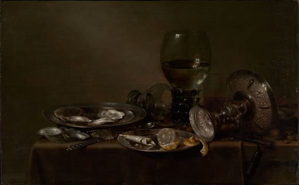Adriaen Coorte painted "Shells on a Stone Plinth", sometime around the turn of the 18th century, using oil on canvas. The composition is immediately striking for its stark contrast: the dark, almost cavernous background throws the assortment of shells into sharp relief. Notice how Coorte arranges the shells - each carefully positioned to display its unique texture, shape and color. The plinth itself is a study in geometric simplicity, offering a stable base that accentuates the organic forms above. The shells, rendered with remarkable detail, invite us to consider their individual qualities. The spiral of one shell is a testament to natural geometry, while the mottled surface of another hints at the complex forces of nature. Here, Coorte isn't merely depicting shells; he is presenting a meditation on form and substance. The arrangement suggests a semiotic interplay, hinting at the ephemeral nature of beauty and the mysteries hidden within the mundane. It is a moment of contemplation, where art invites us to pause and reconsider our perception of the world.