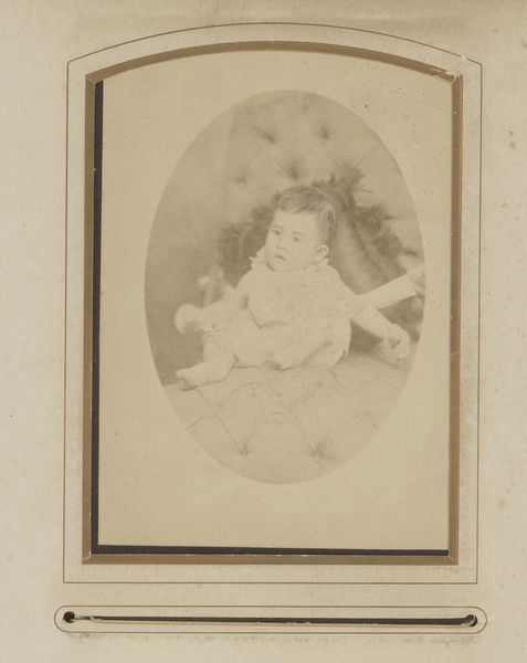 Editor: Here we have "Portrait of an Unknown Child," a photograph created between 1871 and 1890 by Petz & Co. The child's pose is rather striking, almost defiant. How do you read this portrait? Curator: Well, first, we have to consider the historical context. Photography in the late 19th century wasn't casual; it was a deliberate act, often a signifier of class. A studio portrait like this speaks volumes about access and representation. The child, though "unknown" to us, occupies a space of privilege captured in the image. This access needs to be viewed through the prism of who had the agency to be seen, and whose stories remain untold. Do you notice the ornamentation? Editor: The chair, you mean? It looks almost like a small throne! Curator: Exactly! Consider how the staging contributes to an idealized image of childhood, but also reinforces societal expectations and the visual language of power. Could we see this ‘defiant’ expression as resistance? Or is that too generous an interpretation given what we know about photography at this time? Perhaps they simply were uncomfortable? Editor: It's interesting to consider the possible discomfort. It challenges the idealized portrait and humanizes the child in a way I hadn’t thought about before. So, rather than reading just the pose, it's also about reading what's behind it. Curator: Precisely. Art, like history, requires a critical lens, always questioning whose narratives are prioritized and whose are obscured. What are the power structures that enable some stories to be told and others forgotten? Editor: That’s a great point. I hadn't considered it that deeply, and I will look at historical portraits with new eyes from now on. Curator: And that’s the power of art history; not just seeing, but critically examining.