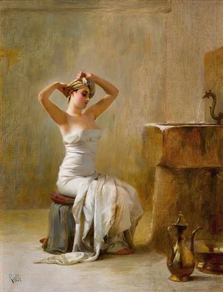 Eugen von Blaas painted 'Flirtation' in the late 19th or early 20th century. The scene depicts a young couple in what appears to be Venice, engaged in a moment of playful interaction. Von Blaas was known for his genre paintings, often romanticized visions of everyday life, particularly in Venetian settings. During this period, Venice held a certain exotic appeal for Western Europeans, and the art market catered to a demand for picturesque scenes of Italian life. Note how the architecture and costumes, rendered with a focus on detail and light, serve to create an idyllic atmosphere. 'Flirtation' reflects a broader trend in European art: the rise of bourgeois audiences who favored sentimental and anecdotal subjects. To truly understand this work, we'd need to delve into the art market of the time and explore the social and economic factors that fueled the demand for such images. By exploring these contexts, we can gain a deeper appreciation for the role art plays in reflecting and shaping cultural values.