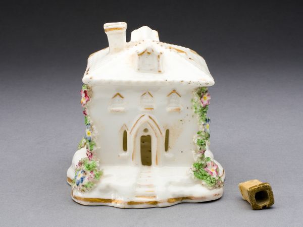 This is a Staffordshire pottery incense burner, made in England in an unknown year. These small, decorative objects offer a glimpse into the religious and social practices of 19th-century England. The form of the burner, a miniature building with gothic windows, suggests a church or perhaps a romanticized version of a rural cottage. During this time, the Church of England played a significant role in daily life, and household objects like this one provided a tangible connection to faith and community. The floral decorations and idealized architecture speak to a broader cultural interest in nature and the picturesque. Mass-produced pottery like this was relatively affordable, making it accessible to a wide range of people. Analyzing objects like this requires us to delve into social history, examining census records, religious documents, and trade statistics. By understanding the historical context, we can better appreciate the multiple meanings embedded in this seemingly simple object.
