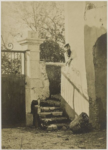 Jaromír Funke captured this silver gelatin print, "Untitled [boy looking over bridge]," a powerful visual metaphor. The boy's gaze is directed downward, a symbol of introspection and contemplation, reminiscent of Narcissus gazing into his own reflection, or Ophelia before her fateful plunge. This motif of downward looking appears throughout art history, evoking themes of sorrow, reflection, and the passage of time. Consider ancient Roman funerary sculptures where figures often look down in mourning, or Renaissance paintings depicting the deposition of Christ. The act of looking over a precipice has a psychological dimension; it represents confronting the unknown or peering into the depths of one’s own subconscious. Shadow and light play upon the stone, symbolizing opposing forces in the human psyche, engaging viewers on a subconscious level. The boy’s shadow embodies the cyclical progression of symbolism, resurfacing, evolving, and acquiring new significance across diverse historical milieus.