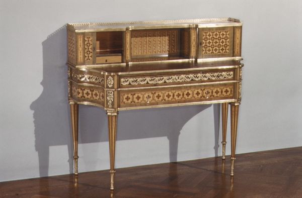 This writing desk with a raised back was crafted by Jean Henri Riesener, a cabinetmaker of German origin, during a period of unprecedented luxury and excess in France. Riesener became a favorite of Queen Marie Antoinette. This desk embodies the opulence of the French court prior to the Revolution. The desk is lavishly decorated with intricate marquetry, brass detailing, and gilded accents. The desk features a raised back with compartments, drawers, and a writing surface, all designed to facilitate correspondence and administrative tasks. These objects served as status symbols, reflecting the wealth and refinement of their owners. Consider the labor required to produce such a piece, the exploitation of resources, and the stark contrast between the lifestyle it enabled and the lives of the vast majority of the French population. Riesener's desk is more than a functional object; it is a relic of a bygone era, laden with the complex histories of power, privilege, and inequality.
