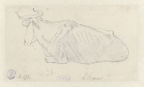Editor: Here we have Henri-Charles Guérard’s "Sculpture of a Rabbit," made in 1883. It’s a drawing, mostly in pencil, and it’s quite striking. The way the lines create the volume is impressive, especially given the simplicity of the medium. What can you tell me about the artistic approach here? Curator: It’s crucial to recognize the material conditions that allow for such a work. Guérard's skilled hand wielding a pencil transforms graphite into something mimicking sculpture. But think about the paper itself – the labor and resources to produce it. Was it mass-produced, or handcrafted? These details influence the reception of the image, right? Editor: Absolutely. The type of paper impacts how the pencil adheres and how the textures come across, and of course access to these materials would also impact artistic creation. Curator: Exactly. And what about the social context? Realism emerged with industrialization. Did the rise of factory production influence the depiction of this very real rabbit, imbuing it with a different significance? Consider too the potential market. Who was intended to consume this image? Editor: So you're suggesting the drawing is not just about portraying the rabbit accurately, but about larger issues of production and consumption within that historical period? Curator: Precisely! The choice of something as quotidian as a rabbit elevated through artistic skill invites us to contemplate the labor and materiality embedded within what we often consider mundane. Editor: That’s fascinating. I'd never considered the drawing through the lens of production processes before, it adds so much to it. Curator: It encourages a deeper consideration not just of the *what* but of the *how* and *why* behind the artwork’s existence. Editor: Definitely gives me a new perspective on art in general. Thanks!
