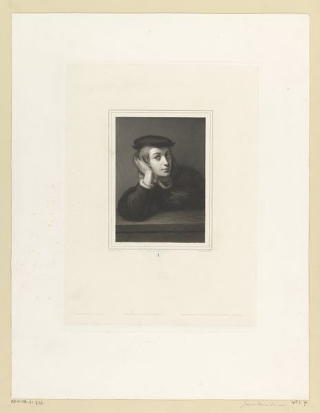 Jean-Baptiste Meunier made this portrait of Francesco Primaticcio using the photogravure technique. This print, made in 19th-century France, reflects a broader 19th-century fascination with Renaissance artists. Consider France's Académie des Beaux-Arts, which shaped artistic taste through rigorous training and historical study. Artists like Primaticcio represented the epitome of artistic skill and intellectual refinement. Meunier’s choice to portray Primaticcio suggests a reverence for this institutionalized ideal of artistic genius. The photogravure technique itself, a relatively new method at the time, allowed for a high level of detail and tonal range, mimicking the qualities of a fine drawing or painting. In France, at this time, there was a burgeoning print market and this allowed the circulation and distribution of images. The portrait serves not only as a likeness but also as a cultural artifact. It embodies the values and ideals of the French art establishment, reinforcing the canon of great artists and perpetuating a particular vision of artistic history. Further research into the archives of the Académie des Beaux-Arts and the print market of 19th-century France would give more context.