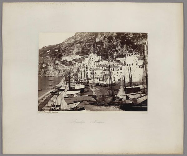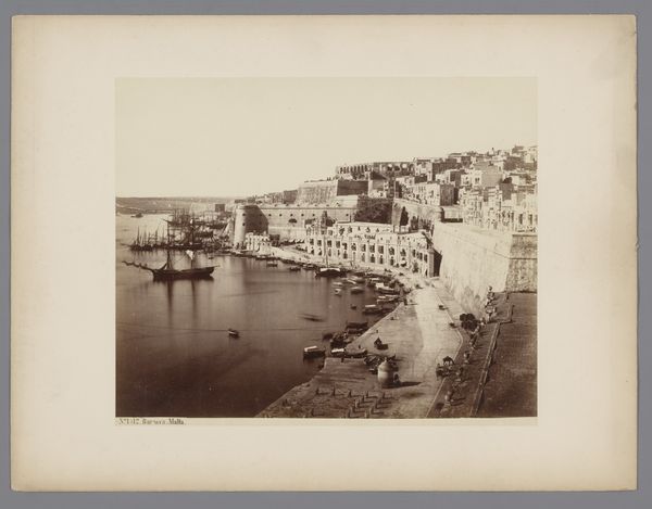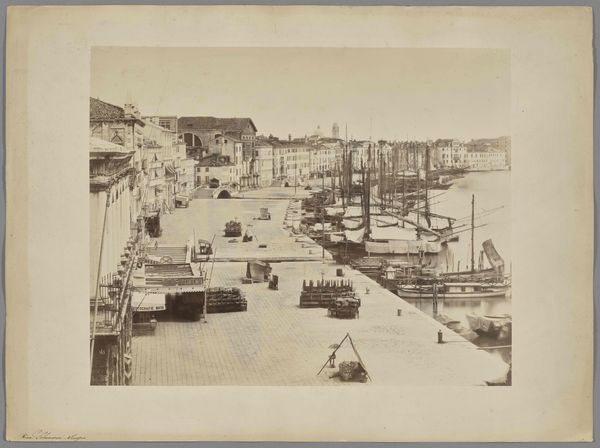 Editor: Here we have "Gezicht op de haven van Genua, Italië," taken sometime between 1858 and 1893 by Alfredo Noack, a gelatin-silver print. The first thing I notice is the stark contrast between the bustle of the harbor and the seemingly impenetrable walls surrounding it. It makes me wonder about who is excluded from this beautiful scene. What's your take? Curator: That's a perceptive observation. Indeed, let's consider this harbor, a site of trade and exchange, through a lens of inclusion and exclusion. The pictorialist style softens the scene, creating an aestheticized vision of progress, yet that very aesthetic obscures the labor and the power dynamics at play. What does it mean to present this image without foregrounding the lives of the dockworkers, the sailors, or the migrants who would have passed through this port? Editor: I hadn't considered that. It seems like the "cityscape" theme focuses on the buildings and ships but overlooks the individuals whose labor makes it all possible. Curator: Precisely. Consider also the colonial context of 19th-century Italy. Ports like Genoa were crucial nodes in global trade networks that extracted resources and exploited labor from colonized territories. How complicit is this photograph in celebrating that system? Do you think that the gelatin-silver print helps to immortalize a colonial gaze? Editor: That’s a really important point about colonialism that shifts the picture's meaning. Thinking about Noack, his position as a foreign photographer also impacts his representation, perhaps idealizing the port or overlooking critical viewpoints. Curator: Exactly. His identity inevitably shaped what he chose to capture and how he framed it. So, how can we look at photographs like these today, understanding the complex interplay of art, power, and historical context? Editor: This makes me question whose stories are prioritized. Next time I see a historical landscape, I’ll try to consider the unseen actors and the underlying political systems that shape our understanding of them. Curator: Excellent. Seeing photography through that lens allows us to have a more informed and critical perspective.