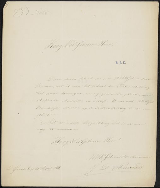 This letter, "Brief aan anoniem," was written by Gerardus Willem van Dokkum, a Dutch artist who lived in the 19th century. The letter offers insight into the social constructs and power dynamics of the art world during that time. Van Dokkum, in his correspondence with an anonymous person, reveals the complexities of artistic creation and the artist's need for recognition. He expresses that he is a painter who exists by virtue of painting portraits. The act of writing itself becomes a performance of identity, a negotiation between the artist's self-perception and the expectations of society. The need to appeal to an anonymous figure reflects the artist's dependency on the patronage system and the societal structures that defined success. In the end, the letter’s vulnerability reminds us of the deeply personal nature of artistic creation and the universal desire for acceptance, all while underscoring the social structures that shape the art world.