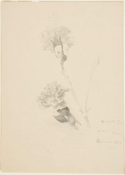 Curator: Andre Dunoyer de Segonzac created this etching, "Les lys roses," sometime between 1929 and 1932. What's your immediate reaction to this print? Editor: Strikingly minimal. The sparseness of line creates a delicate yet slightly haunting landscape. There is a sense of lightness, even impermanence. Curator: Segonzac, as an artist deeply engaged in representing modern life, particularly during times of social and political unrest, might be using these lilies as a symbol. Given lilies are traditionally associated with mourning and remembrance, consider the broader historical context of the interwar years and the sense of loss permeating society. Editor: Yes, but considering the impressionistic style, shouldn't we primarily focus on the formal composition? Notice how he uses varying line weights to suggest depth and shadow, alluding to form rather than defining it precisely. The strategic use of hatching gives texture to what would otherwise be stark outlines. Curator: While I agree that these techniques are essential for grasping the visual impact, let's consider the absence too. Absence can also speak volumes—perhaps referencing collective traumas and lost identities emerging as legacies of war and industrialization. Editor: A valid reading, however I would be careful. His style is often understood to derive primarily from his technical expertise in line work—we might look towards other drawings for better clues about identity issues than from this seemingly pastoral example. Note how he renders the delicate droop of the lily blossoms, playing with negative space to suggest weight and fragility. Curator: Of course. Segonzac lived through radical shifts, which also challenged social conventions around masculinity, labor, and national identity. Can this floral still-life engage in that wider discourse by perhaps drawing a stark juxtaposition? How these personal botanical scenes challenge ideas is significant in deconstructing power through everyday moments, a theme common in many interwar female artists. Editor: Perhaps a compelling reading with further corroboration, although for me, it returns back to the aesthetic of impermanence, where the flowers exist within a delicate but ever changing ecosystem; this is primarily expressed in the linear rendering. Curator: Interesting points! These combined insights provide a fresh lens through which we might consider Segonzac's choices—how these aesthetic elements become part of cultural statements, echoing beyond the boundaries of formal beauty. Editor: And indeed, whether our interpretation veers towards formal analysis or a focus on sociopolitical dimensions, what stays is a visually subtle, deeply affecting image open for constant re-evaluation.
