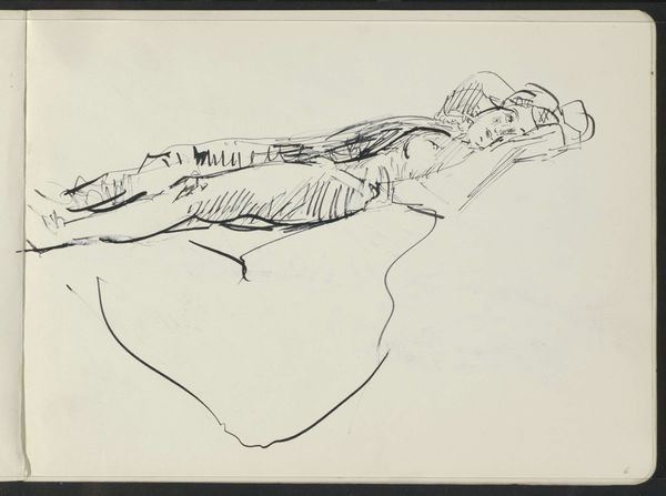 Samuel Jessurun de Mesquita made this drawing, "Man in profile to the right with his left hand raised," with pen and ink on paper. The starkness of the black ink creates a bold contrast against the white paper, emphasizing the clean lines and geometric forms. The artist was part of a generation that used printmaking to express their social and political concerns. With a nod to both realism and abstraction, the artist captures the human form, in a society undergoing rapid change. De Mesquita likely used a relatively simple set of tools: a pen, ink, and paper. The ink lines vary in thickness, suggesting a controlled yet expressive hand. The starkness of the medium mirrors the difficult and turbulent times in which the artist was living. The directness of the line and the reduction of detail invite us to consider the essence of the subject and its connection to broader social themes. It reminds us that even seemingly simple materials and processes can convey profound meaning.