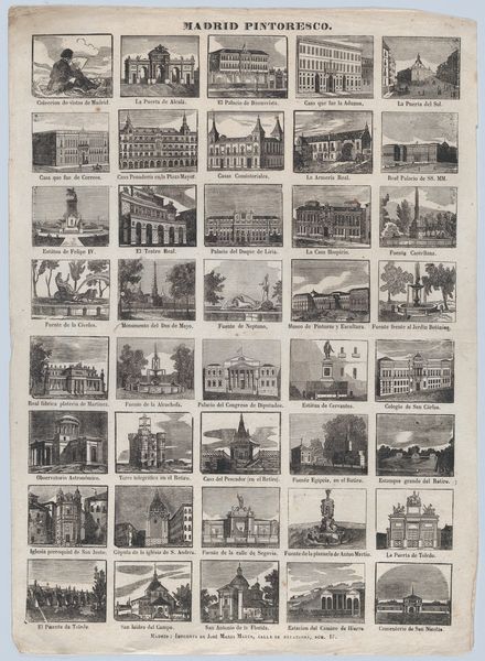 Curator: This print by David Loggan, entitled 'Views of the Bodleian Library, the Theatre, Public Schools, Colleges, Halls and other Public Buildings of the University of Oxford', created between 1643 and 1692, presents a fascinating, comprehensive survey of Oxford University’s architectural landscape. Editor: It's striking how formal and measured it feels. Almost like a family photo, everyone lined up stiffly but undeniably *there*. The sheer number of buildings gives it a sense of contained energy, if that makes any sense? Curator: Absolutely! It is essentially an architectural portrait gallery. Each individual image is rendered with precision, demonstrating Loggan's meticulous engraving technique. Beyond a mere visual record, the print served to showcase the power and prestige of the University during a period of significant social and political change in England. Editor: The uniformity intrigues me, though. Are we meant to see them as equal parts of a whole, or is Loggan hinting at hierarchies within the University structure through their placement? Are some more prominent, grander, more important? Curator: That's a keen observation. Consider the location of Christ Church or the Bodleian Library, given a certain amount of space... It's likely a combination of both, reflecting their relative importance within the University's ecosystem and purely a choice that relies on aesthetic quality and symmetry. The ordered presentation provides a sense of stability, but Loggan must have had some notion of order, as it isn't wholly democratic. Editor: You can almost hear the whispers of ambition echoing from these stone facades, though! These aren't just buildings; they are the silent witnesses to centuries of scholarship, power struggles, and the relentless pursuit of knowledge. There's something potent about compressing all of that into a single sheet. Curator: And the figures beneath! Each distinguished according to profession and college. It makes me wonder what David Loggan's place would be within all this order. As artist and chronicler, he positions himself outside of it, while entirely embedded. Editor: Precisely! That tension is what makes the print so compelling, at least for me. The formal structure reveals underlying currents of power and intellectual fervor, all neatly contained, yet visibly brewing. I'll have to find a comfy spot to study up on that place! Curator: Perhaps, that is where David Loggan wanted us to focus; in what may occur behind those stone walls... Thank you for sharing your insight.