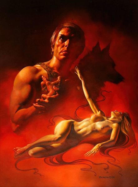 Boris Vallejo painted 'Tarzan's Quest' in an era when pulp adventure and fantasy narratives were enjoying renewed popularity, as well as increased commercial success. Here, we see a muscular Tarzan restrained by a dark-skinned figure, possibly an Indigenous warrior; this depiction evokes a complicated history of colonialism and racial stereotypes, which still saturate much of popular culture. The imposing figure of the warrior, draped in tribal ornaments, poised with a knife, complicates any reading of the artwork. What does it mean to portray him as both threatening and regal? Is this a reflection on the "primitive" versus "civilized," or does it speak to the historical conflicts between colonizers and native populations? Consider how the image plays into or subverts expectations. While rooted in fictional adventure, its engagement with power dynamics and cultural clashes continues to resonate today.