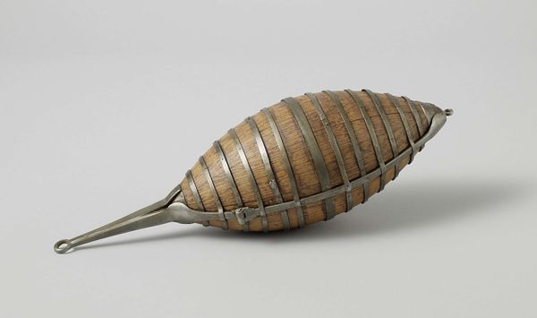 Editor: This curious sculpture, “Bal voor sjako officieren,” which translates to “Ball for shako officers”, dates back to 1830-1831. It appears to be an assemblage using found objects. The object’s humble, almost drab appearance strikes me. What significance do you find in this... artifact? Curator: Let’s think about the labor and materials. The very title highlights military rank and status. Shako officers were part of a specific social hierarchy. The "ball" is crafted, perhaps from repurposed materials, imbuing it with inherent social context: it reflects limited means perhaps used to mimic and mock social elites. Editor: So you’re saying the materials themselves—their cheapness, their availability—speak to a social commentary? Curator: Precisely. Consider the means of production, especially when contrasting it against the implied grandeur of a "ball" for officers. Is this an official toy or a handmade piece perhaps used in a game of cricket by someone lower in the military? It could subvert military glamour, highlighting the disconnect between officer elegance and the materials soldiers commonly access. What social critique are we to find in its deliberate contrast? Editor: The found objects become incredibly poignant then! Is it meant to democratize entertainment, or mock the elite's extravagance with materials that seem deliberately… rough? Curator: Exactly! And the act of assemblage, of bringing together these disparate parts, challenges our preconceived notions about what constitutes ‘high art.’ Are we meant to consider military life, or the nature of play among specific social groups? We have to analyze both materiality and labor that gave rise to the sculpture to start comprehending Romantic Era culture. Editor: That’s a perspective shift for me. I often get caught up in aesthetic considerations alone, but understanding production adds such depth. Thanks for your insights! Curator: The beauty lies within the blend between labor and utility – it’s the history within the ordinary that speaks the loudest.