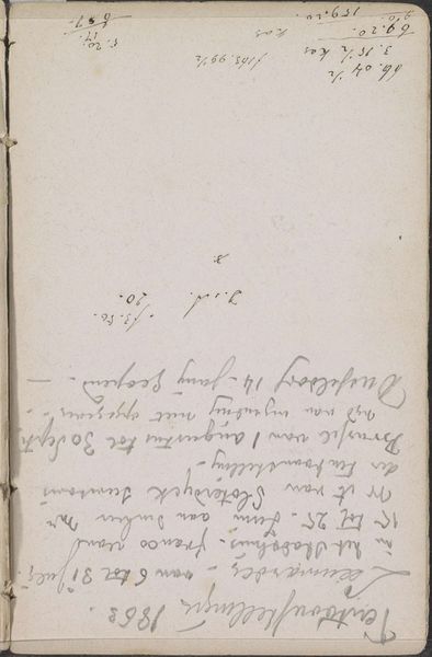 Curator: We’re looking at a page of “Notizen (Notation) [p. 7]" attributed to Max Beckmann. This drawing seems to utilize ink, graphite, and charcoal on paper. Editor: It has an almost accidental quality, a glimpse into the artist's raw thought process. The varying weights of the lines give it a subtle energy. Curator: Indeed, it's a fascinating jumble of text and sketches. The loose composition gives the impression of an intensely private world, a chaotic and informal space where the artist feels free to register his perceptions, ideas and associations. Editor: It certainly evokes a sense of intimacy, even if the fragmented nature resists clear interpretation. Note the relationship between text and image—is one informing the other, or are they simply coexisting? The German Expressionists were invested in primal feelings. I feel like they sought to provoke visceral reactions. Curator: Absolutely. The lack of formal structure typical of Beckmann's approach could indicate a rejection of bourgeois conventions in favour of a more authentic mode of expression rooted in experience. The very act of notation—recording passing thoughts and images—was valued as a creative activity. Editor: Do you think the lack of precise dating contributes to this sense of timelessness? Its historical context is certainly less foregrounded. The interplay of shadow and light suggests a figure, but its obscured form almost blends into the textual components surrounding it. Curator: Precisely, its visual form certainly evokes his contemporaries of the time. As with many works from this time period, there are possible sociopolitical contexts which we may never fully comprehend today without his direct perspective. Editor: In its unresolved quality, this drawing embodies a creative spirit. What an intimate portal into Beckmann's inner world! Curator: Yes, it offers a candid glimpse into the genesis of artistic concepts and a testament to the enduring importance of recording fleeting inspirations.