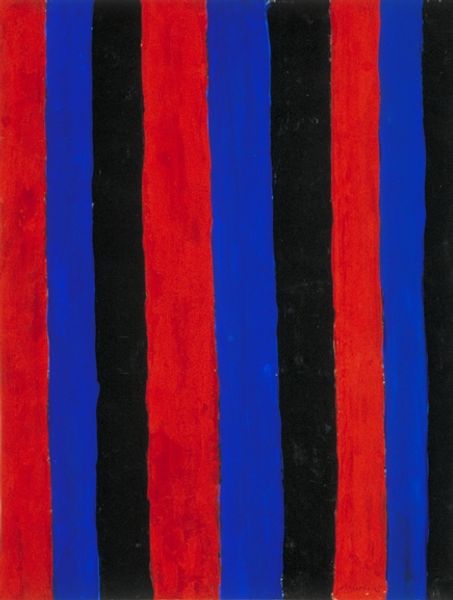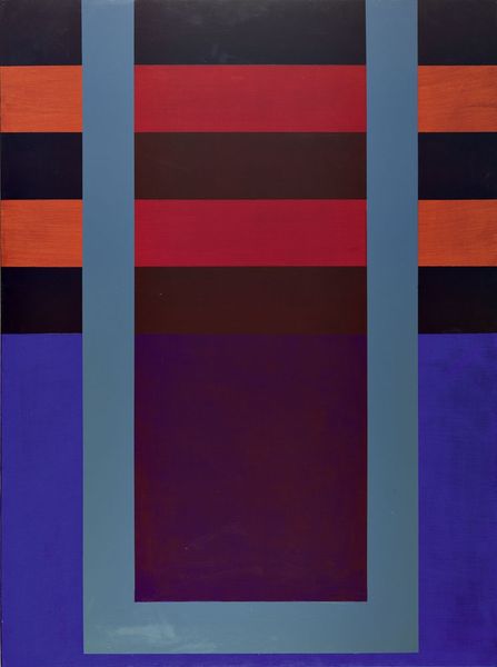 Editor: We're looking at "Red River Valley #1" by Pat Lipsky, made in 2003 using acrylic paint. At first glance, it's these stark blocks of colour—reds, blues, blacks—arranged in this grid that kind of throws me. It feels almost…musical? What do you make of it? Curator: Musical, that’s interesting. It does have a rhythm to it, doesn’t it? It’s very Colour Field, very Hard-Edge. Lipsky, you see, she's stripping painting down to its absolute essentials: colour and form. Do you think the title influences how you see the painting? Editor: Possibly! "Red River Valley" conjures a sense of landscape, even though there isn’t a literal one depicted. Maybe that's why I perceive musicality? Like flowing water or distinct notes? Curator: Exactly! The feeling overrides depiction. These colours, the way they butt up against each other... it creates a tension. And yet, there's a balance, too. Is there anything that makes the painting “good” or "bad" in your perspective? Editor: That balance is interesting. The tension keeps me engaged, it is an aesthetic experience! Maybe I came expecting representation, so the starkness initially felt…jarring? Now, I’m enjoying how those simple blocks communicate so much! Curator: That’s what abstraction is all about – opening yourself up to possibilities beyond representation. It’s a visual poem. Or, as you beautifully suggested, a melody waiting to be heard. I learned from you. Editor: Same here, I had my doubts but I ended up with a new perspective on abstraction.