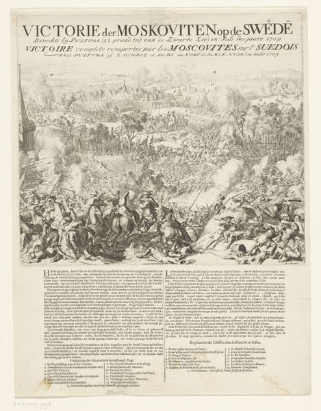Editor: This engraving, titled "Allegory on the State of Affairs in the War with France, 1674" by Romeyn de Hooghe, is incredibly detailed. There's so much chaos depicted, a real sense of struggle. How do you see this piece, what stands out to you? Curator: As a materialist, I’m particularly drawn to the socio-political implications embedded in the printmaking process itself. Engraving, unlike painting, allowed for mass production and distribution of imagery. Think about it – this image, duplicated and circulated, became a tool to shape public opinion regarding the war. The very act of its creation speaks volumes about the era’s media landscape. Who commissioned it, who distributed it, and where? These questions expose the underpinnings of power. Editor: That’s fascinating, I hadn’t considered the printing process as being so intertwined with the message. Did the materials themselves—the paper, the ink—play a role in how it was received? Curator: Absolutely. The quality of the paper, the fineness of the engraving - these weren’t just aesthetic choices. They were signals of wealth and status that further impacted its reception and who had access to this commentary. Cheaply made, the message might not be taken seriously; expertly rendered, and its gravitas is increased, reinforcing certain narratives. It's about the labor, resources and power dynamics embedded in its materiality. Editor: So, the medium isn't just the message; the means of production also shape the interpretation? Curator: Precisely. Consider who was involved in each step - the engraver, the publisher, distributors... each brought their own biases. Investigating the material history is critical to unpacking its meanings. Editor: This gives me a totally new perspective. I will consider the physical origins of any artwork in relation to its cultural message going forward. Thank you. Curator: A shift in perspective will surely broaden our cultural views of all artistic creation.