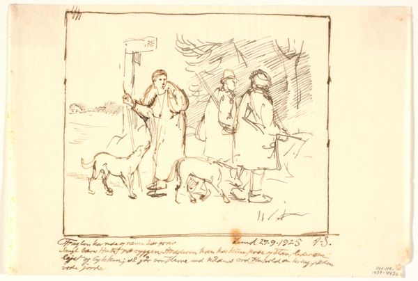C.A. Lorentzen created this pen and brown ink drawing, titled *A Woman Kneels Before a Seated Man*, sometime between the late 18th and early 19th centuries. It depicts a theatrical scene rife with the gendered and class-based power dynamics prevalent in that era. The kneeling woman, a figure of supplication, contrasts sharply with the seated man, who embodies authority and control. The weeping woman in the background adds another layer of emotional intensity, underscoring the vulnerability of the female figures. The composition invites us to consider the limited agency afforded to women during this period, and how they were often positioned in relation to male power. Is this artwork simply a reflection of its time, or does it offer a subtle critique? Perhaps Lorentzen is subtly challenging these societal norms, inviting viewers to question the power structures that govern their lives. Either way, the emotional resonance of this drawing remains palpable, reminding us of the human cost of inequality.