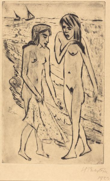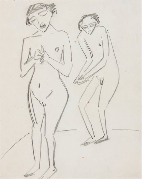 Otto Mueller rendered "Drei Akte" with charcoal, a medium lending itself to stark contrasts and profound expressiveness. The triad of female nudes echoes a classical theme, yet their portrayal diverges sharply from idealized forms. Consider the motif of the Three Graces, often depicted in art history: these figures represent beauty, charm, and joy. Here, the women possess a certain vulnerability. Their poses, especially the figure seated with averted gaze, suggest introspection or perhaps a sense of alienation. We see this in the ancient world, like the Three Graces in Pompeii, emblems of abundance. Yet Mueller strips away any overt symbolism, leaving us with raw emotion. The cyclical return of these symbols throughout art history reveals not just changing tastes but an enduring human need to grapple with the complexities of existence, a force that engages us subconsciously.