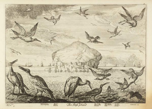 Editor: This etching by Francis Barlow, titled "Patriges," features a covey of partridges. The fine lines create a really interesting texture. What can you tell me about the role of prints like this in their time? Curator: Prints like this one played a vital role in shaping natural history and country life imagery. They popularized certain perspectives on the animal world, often connected with land ownership and the gentry's relationship to the hunt. Editor: So, it's not just a picture of birds, but says something about society? Curator: Precisely. Consider how the artist chose this particular subject. Does it celebrate rural life, assert dominance over nature, or something else entirely? Editor: I never thought of it that way! Thanks for shedding some light on the social context. Curator: My pleasure. It's through that lens that we truly understand the art's significance.