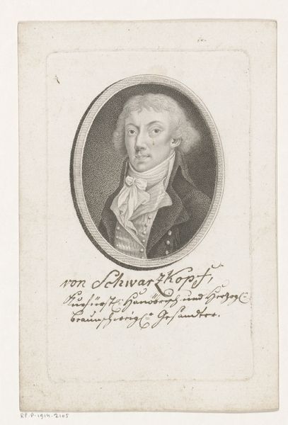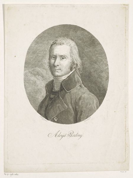 This is Friedrich Rossmässler's portrait of Johann Bartholomäus Trommsdorff, made with etching. Encapsulated within an oval frame, Trommsdorff is meticulously rendered. Rossmässler’s etching technique gives a tangible presence to the subject; the detailed cross-hatching and fine lines create a play of light and shadow that models Trommsdorff's features. The composition, with its focus on the upper body, invites an intimate engagement. What's particularly striking is the way Rossmässler uses the etching to convey texture. From the soft, powdered wig to the crisp lines of the collar and the plush fabric of the jacket, each element is carefully differentiated through subtle variations in line density and direction. The oval format, a classical choice, frames Trommsdorff in a manner that feels both formal and personal. It invites us to consider not just the man, but also the symbolic weight of representation itself.