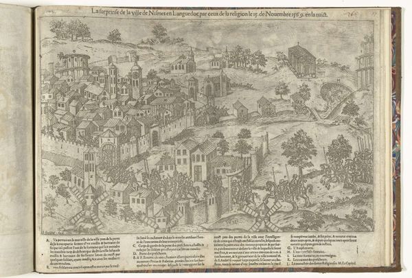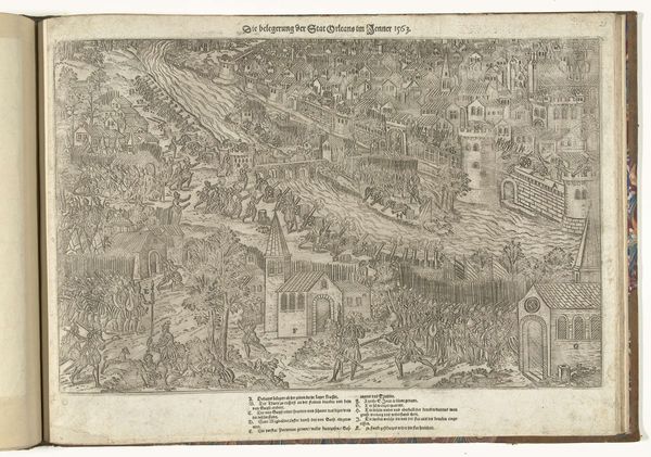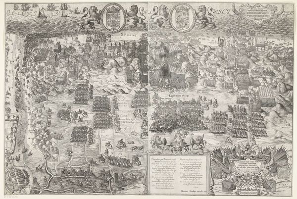 Editor: So, this is "The Spanish Fury in Antwerp in 1576," an engraving from 1577 by Frans Hogenberg. It's a really intricate, almost overwhelming cityscape. There's a lot happening! What strikes me is how it uses multiple scenes to depict one event. How would you interpret this work? Curator: I see it as a visual record deeply embedded with the emotional and psychological weight of the event it depicts. It’s more than just a historical record; it’s a carefully constructed narrative meant to stir a visceral response. Look at how the scenes of violence frame the central map of the city, embedding that aerial view, a supposedly neutral representation, with scenes of immense suffering and ruin. The cultural memory of this event becomes intertwined with the very image of Antwerp. Do you think that there is a certain propaganda to its tone? Editor: Definitely. It's hard to ignore the way the artist seems to be condemning the actions portrayed. It is trying to construct and enforce an image for later views. How would contemporary audiences respond to the clear use of emotive framing of images to get their interest? Curator: Indeed, you bring up an important point. Consider this engraving not just as a snapshot of the Spanish Fury, but as a cultural artifact shaping future generations' understanding and response to it. Each symbol, each scene, has been imbued with meaning. And how might later image techniques carry their messages using some of these tactics, like multiple point-of-view depiction to tell the same, emotive narrative. Editor: It’s amazing to think how much of this story is held within these lines and how it continues to transmit today. This really drives home how images can actively shape our understanding of history and memory. Curator: Exactly, and by understanding the symbolic language and cultural context, we can decipher these visual narratives and how this can form our collective understanding of identity, place, and nationhood.