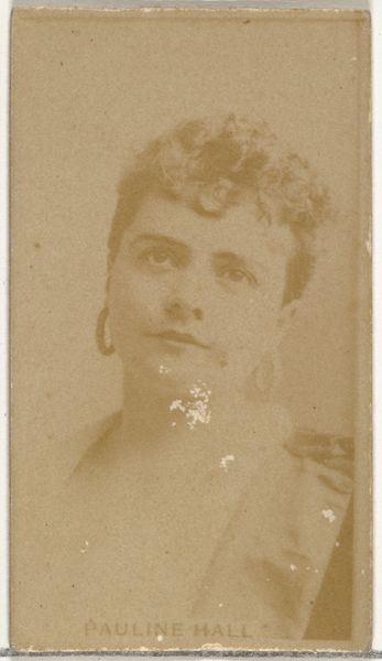 Editor: This is a photograph of Anna O'Keefe, from the Actors and Actresses series, printed between 1885 and 1891 by Allen & Ginter. It seems quite small, almost like a playing card. What's striking to me is how staged it feels, especially knowing it was used in cigarette packaging. What do you see in this piece? Curator: Well, seeing it within the context of cigarette packaging is key. These cards weren't just innocent portraits; they were instruments of consumer culture. Consider how the image of Anna O’Keefe, likely a popular actress of the time, was being used to sell a product – tobacco. Editor: That’s interesting! So, it's not just about art; it's about commerce and celebrity? Curator: Exactly. It's a commentary on the emerging role of celebrities in advertising and the power of visual media to shape public desires. Allen & Ginter weren't just selling cigarettes, they were selling a lifestyle, associating it with beauty, success, and fame. Editor: I hadn't thought about it that way. It makes me wonder, what did it mean to be a female "actress" represented in this medium at that time? Curator: The image would have helped the brand create a cultural and aspirational narrative around their cigarettes, even at the cost of the subject herself. Did she consent to its commercial exploitation? What payment did she receive, and was it fair? How complicit were these actresses and actors in propagating these norms? These are vital questions when analysing this imagery. Editor: It's eye-opening to see how this seemingly simple portrait is intertwined with complex socio-cultural forces. Curator: Absolutely, examining art within its historical context allows us to unpack the power dynamics at play, giving insight into consumer culture and media of the period. Editor: I'll never look at old ads the same way again. Thanks!