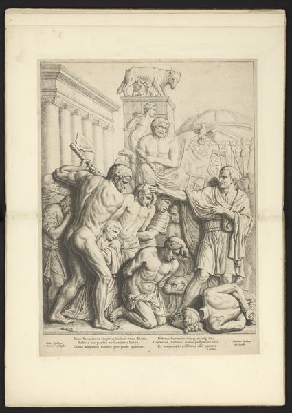 François Collignon created this engraving, *An Allegory with Innocent X*, in the mid-17th century. The image presents us with an interesting depiction of the Pope set against the backdrop of Rome. But it's not exactly flattering. Here, Innocent X is shown riding a donkey, an animal often associated with humility but also stubbornness and foolishness. The figures in the lower left, representing Rome, appear to be in disarray, possibly suggesting a critique of the city's moral or political state. The putti in the upper register hold aloft heraldic devices of the Pamphili family to which Innocent X belonged. This was a period of significant upheaval in Europe, marked by religious conflicts, political power struggles, and social change. We know that the Catholic Church's authority was being questioned, and the opulence of the papacy was seen by some as excessive. The figures in the image seem to highlight a tension between spiritual authority and earthly power. To fully understand this piece, one might delve into pamphlets and printed images of the period. Through these sources, we can come to learn about the social and institutional contexts that shaped not only the creation of this artwork but also its various interpretations over time.