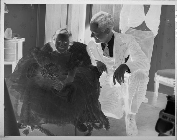 Editor: This is an intriguing gelatin silver print by Peter James Studio, titled "Untitled (man and woman shaking hands)." I’m curious about the power dynamics at play here. What's your interpretation? Curator: This image, though simple, speaks volumes about representation and power. Who are these figures? What narratives are amplified or silenced by their interaction? How does the photographic medium itself contribute to the construction of their identities and the social context it conveys? Editor: It’s interesting how a simple handshake can hold so much weight. Curator: Precisely. The photograph invites us to question the unspoken rules and hierarchies embedded within seemingly ordinary exchanges. These interactions are never neutral.