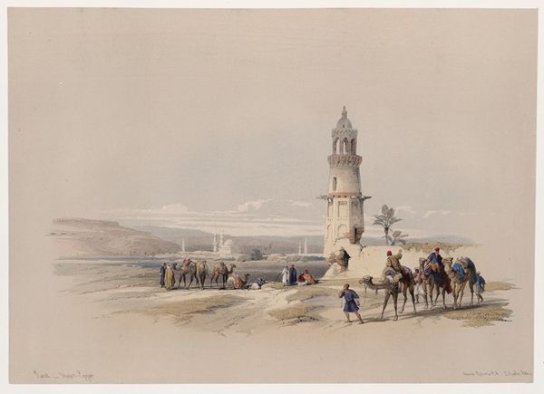 David Roberts created this watercolor, "Oriental Scene," now at the Metropolitan Museum of Art. The painting, with its muted tones and soft washes, invites us into a dreamlike vision of the East. Roberts masterfully uses the medium to create a sense of depth and atmosphere. Notice how the composition is structured around the intricate architectural forms, with the cylindrical tower as a central axis. Roberts's adept use of line and form captures the details of the architecture. The figures, rendered with quick, impressionistic strokes, add a sense of scale and human presence without disrupting the overall harmony of the composition. Roberts's painting challenges fixed meanings, engaging with ideas of Orientalism prevalent at the time. The formal qualities of the artwork—the delicate brushwork, muted palette, and emphasis on architectural structure—serve not just as aesthetic devices but also as cultural and philosophical statements. By examining these elements, we can better understand how Roberts both participates in and complicates the discourse around the East.