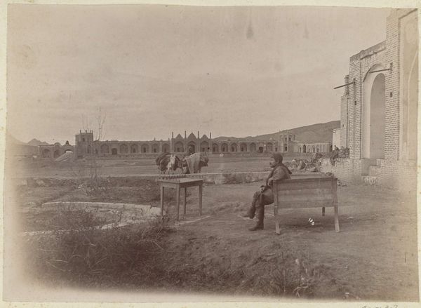 This photograph, taken by P. Oosterhuis, captures the Prins Frederikkazerne on the Nieuwekade in Leeuwarden, using a muted palette to convey a quiet urban scene. The composition, built on a subtle balance of architectural and human elements, draws us into the space. The geometric regularity of the barracks, with its repetitive windows and stoic façade, is softened by the sparse trees. Oosterhuis manipulates perspective to emphasize the building’s imposing presence, setting it against the more transient human activities in the foreground. The interplay between the static structure and the dynamic figures introduces a tension that speaks to the changing urban landscape. Consider how the choice of sepia tones and the texture of the photographic print contribute to the artwork's atmosphere. These choices serve to emphasize the photograph's status as both a visual document and an artistic representation of time and place, inviting us to contemplate the intersections of history, architecture, and daily life.