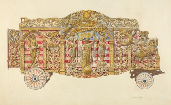 Adolf Wölfli created this drawing, "Der Gott=Vatter=Riesen=Blitz=Transparantt," with colored pencil, likely during his long institutionalization. The materials and processes of drawing are traditionally humble, accessible to many, yet Wölfli elevates them through intense application. Notice how the density of layered color creates depth and vibrancy, defying the supposed limitations of colored pencil. The sheer labor evident in the intricate patterns and obsessive detail speaks volumes. Each line, each carefully chosen hue, contributes to a visual language entirely his own. Consider the social context: confined within an asylum, Wölfli transformed mundane materials into a vehicle for boundless creation. His art became a means of self-expression, and even self-preservation. It challenges the traditional art world's separation of art from craft, and of artists from those deemed "outsiders". Wölfli's work reminds us that meaning arises not just from concept, but from the very act of making.
