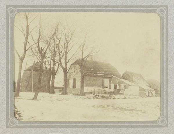Editor: Here we have Gerard Aalbersberg’s gelatin silver print, "Landschap met een boerderij op de Zoom bij Nunspeet," created sometime between 1900 and 1906. The composition, almost dreamlike, gives it this intensely still, peaceful feeling. What stands out to you when you look at it? Curator: The dreaminess you mentioned is precisely what captivates me. This isn't just a picture of a farmhouse; it’s an invitation into a memory, or perhaps a shared, collective past. See how the soft focus renders everything with a gentle, almost forgiving light? Editor: Yes, it softens all the edges. I almost feel like I am peering through a haze. Curator: It’s definitely a nod to pictorialism, this attempt to elevate photography to the level of painting through artistic manipulation. The light feels filtered not just by atmosphere, but also through the artist’s emotion, doesn't it? Like it’s less about documenting the exact look of the farm and more about how the farm _feels_. Editor: Absolutely. Did the pictorialist movement influence how photography was received as fine art at the time? Curator: Precisely. Aalbersberg, in my view, uses realism, almost, to depict something that, despite its quotidian subject matter, feels incredibly distant and ethereal. It allows us to experience a real, tangible structure – a farmhouse, and even the surrounding fields - through a lens that is intensely intimate and subjective. It prompts the viewer to question: what stories might be hiding just beneath the surface of a seemingly simple landscape? Editor: I now find myself longing for simpler times when I look at the print. I see this ordinary landscape, touched by something magical. Thanks! Curator: My pleasure. I think it’s an open window into how deeply felt and individual ‘realism’ can be.