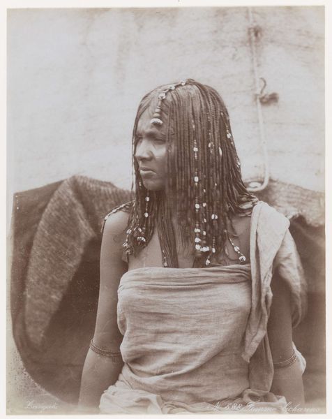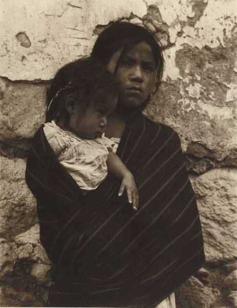 Editor: Here we have Dorothea Lange's "Native American Girl, Taos, New Mexico," from 1931, a gelatin silver print. It’s such a compelling portrait; the girl's gaze is so direct, almost confrontational. What resonates with you when you look at it? Curator: Her direct gaze certainly captures something essential. But, beyond the immediate impression, think about the shawl she's wearing. It’s more than just an item of clothing. The shawl, repeated in countless images across different cultures and times, acts as a symbol. It offers warmth, protection, modesty perhaps, but also… anonymity. Doesn't the weight of that fabric across her shoulders remind you of something passed down through generations? Editor: Yes, there’s a sense of inherited experience, definitely. So, the shawl functions as more than just an aesthetic choice? Curator: Precisely. Lange, a master of visual storytelling, likely chose this composition very deliberately. What cultural meanings can the same, very simple form acquire? Consider too the context - Taos, New Mexico, a place with its own specific history, its own iconography…it adds another layer. Doesn’t the seeming simplicity of the image belie something more complex? Editor: I see what you mean. The shawl also hides, which is intriguing considering that direct gaze...almost as if she's revealing, yet concealing something. Curator: A paradox of identity, isn’t it? Are we ever wholly seen, or do we also carry our histories, shielding parts of ourselves? That's a poignant tension. Lange asks us to ponder not just what we see, but what remains hidden. The image then serves as a reflection, doesn't it, of both the girl and ourselves. Editor: It's fascinating how one photograph can hold so many layers of cultural and psychological meaning. I'll definitely look at photographs differently now. Curator: Exactly, and that is what Iconography unveils! It teaches us to view artwork as more than just a composition or form, but a vessel containing the hopes, memories, and dreams of others.