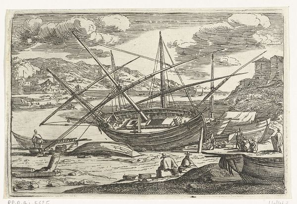 Cornelis Liefrinck the Younger made this print in 1622 depicting boats used by the Leiden civic guard to travel to Grave. This image gives us insight into the social and political landscape of the Dutch Republic during the early 17th century. The print captures the journey of the civic guard, a voluntary militia, reflecting the importance of civic engagement and military readiness in a society that had recently won independence from Spain. The destination, Grave, was of strategic importance. This detail underscores the ongoing geopolitical tensions and military campaigns of the time. Liefrinck's choice of printmaking, a relatively accessible medium, suggests a desire to disseminate this image widely. Art historians rely on archival sources, such as city records and guild documents, to reconstruct the institutional framework that enabled its production. This print is a lens through which we can view the values, aspirations, and concerns of a society in transition.