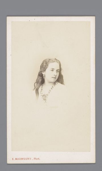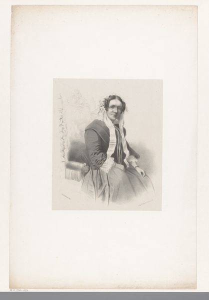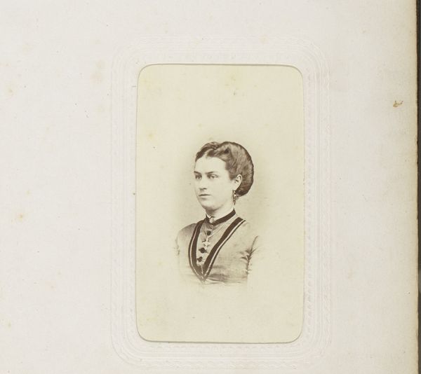 Curator: Looking at this print, “Portret van Maria van Hohenzollern-Sigmaringen," created between 1855 and 1895, one is immediately struck by the graphic precision afforded by the etching and engraving. Editor: She has this wistful look, a real melancholic air. Makes you wonder what's on her mind, what secrets those eyes hold. And is it just me, or does the rigid formality clash a bit with the almost delicate shading? It feels like there's a hidden tension there. Curator: The tension, I believe, is born from a confluence of aesthetic intentions and the inherent nature of portraiture of that era. The realism seeks to capture a likeness, but the composition also performs a role, solidifying her place, emphasizing a certain societal expectation through form. Note how the angle of her face—the profile—emphasizes decorum. Editor: Right, it’s almost as if she's playing a role, but maybe that's just the artist giving us a little nudge, asking us to look deeper, beyond the princess persona. The lighting, the shadows...they are almost theatrical! Are we sure it isn't staging rather than revealing? I sense storytelling, hidden within the formal constraints of court portraiture. Curator: A valid reading. I tend to see the technical constraints, and her almost serene stoicism as a reflection of an era grappling with change, holding steadfast to tradition while glancing toward modernity. It's a portrait embedded in a historical matrix, referencing dynastic lineage through visual tropes. Editor: Exactly, I feel like she’s got her escape planned. Seriously, if you zoom in—look, you can almost see that rebellious glint in her eyes, hinting at something brewing beneath all that formality! You and I will never agree—but you made me see and believe in hidden and complicated lives. It makes this work truly enchanting and, at the same time, strangely and wonderfully relatable. Curator: A very generous observation, perhaps colored by our contemporary lenses. Yet, your reading enlivens and enriches it—rendering the aesthetic formalism, dare I say it, more human.
