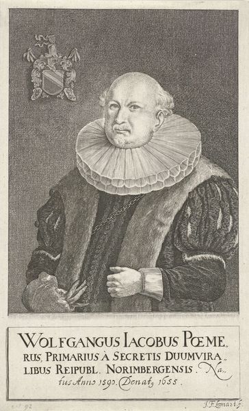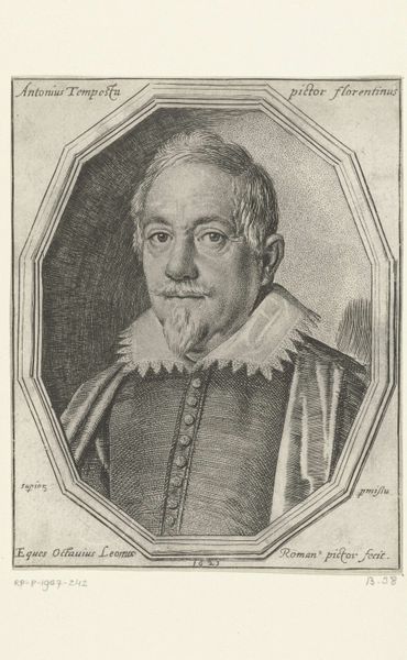 This portrait of Guido Reni was made as an engraving by Joannes Meyssens, a Flemish printmaker active in the 17th century. The image is composed of carefully incised lines into a copper plate, which would then have been inked and printed onto paper. This process allowed for the reproduction and wide distribution of images – a crucial factor in the development of early modern visual culture and the art market. The meticulous lines capture the textures of fabric, hair, and skin, requiring a high level of skill and control over the burin. Meyssens's expertise in engraving transforms a drawn image into a commodity, revealing the intricate relationship between artistic skill, labor, and the rise of print capitalism. Consider the labor involved in the production process – from the artist's design to the engraver's handiwork, and the printer. Understanding the materials, making, and historical context deepens our appreciation of the artwork, challenging traditional notions of art historical narratives.