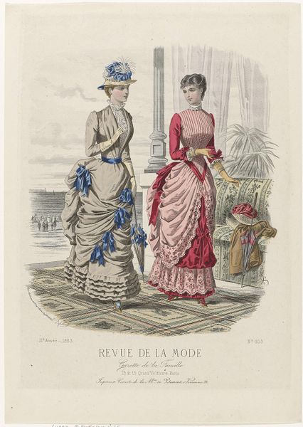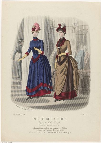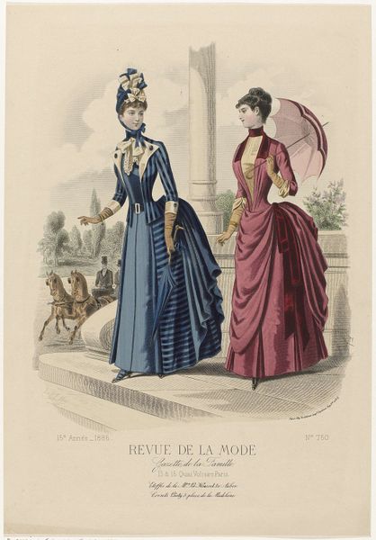 This print, from the Revue de la Mode in Paris in 1884, offers us insight into the fashion and social values of the late 19th century. Fashion plates like these were more than just advertisements; they reflected and reinforced a rigid class structure. Note the emphasis on refined elegance, the impracticality of the garments, and the implied leisure activities. These details were all visual cues signifying the wearer's elevated social status. The backdrop, with its suggestion of a stately home, further reinforces this image of bourgeois respectability. Consider the cultural context: France during the Third Republic. The rise of industrial capitalism created a new class of wealthy elites eager to display their status. Publications like the Revue de la Mode catered to this market, shaping their aspirations and dictating the visual language of class distinction. As art historians, we can analyze such images using sources like trade records, social histories, and even literature of the period to better understand their cultural significance. This is how we can reveal the complex interplay between art, commerce, and social identity.