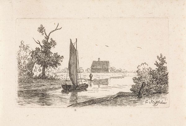 This landscape with houses and ships was created by Isaac Weissenbruch with etching. The scene invites a sense of serene domesticity, contrasting the human-made structures with the natural, free-flowing river. The smoking chimney is an interesting motif. In countless images across time, smoke signals presence, industry, and even life itself. This reminds me of the smoke rising from the hearths in peasant scenes of the Renaissance. The chimney here, topped with smoke, suggests continuity and belonging, speaking to our primal connection to home and community. Consider its evolution from a symbol of simple domesticity to, say, the industrial chimneys of the 19th century, which evoke an almost uneasy sense of modern progress. The smoke, once merely a sign of a family’s hearth, now represents broader, more complex forces at play. This simple etching touches on the collective memory of our connection to land, home, and the shared human experience.