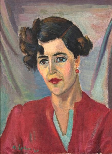 Editor: This is "La Marchesa Maria De Seta," painted by Gino Severini in 1937, using oil paint. What strikes me immediately is the texture of the dress and the oddly placed pigeon; its almost comical! What stands out to you about this work? Curator: Well, beyond the pigeon, which we can get to later, I am most interested in the fabrication of the Marchesa's velvet dress. The conspicuousness of the puff sleeves speaks volumes about the cultural emphasis of appearance and labor of creating such clothing in 1930's Italy. How does Severini's chosen materiality affect how you understand this portrait? Editor: So you’re saying that the emphasis on the dress is drawing attention to the labor involved? It is true that the subject seems less 'glamorous' because I’m so aware of the work that goes into the dress! Is the painting style significant? It seems like a blend of realism and something else… Curator: Precisely! The modern style, along with his rendering of the textures, avoids idealizing the Marchesa, contrasting sharply with traditional aristocratic portraiture, in which the sitter would be idealized and made into more than they were. This more “realistic” style implies a respect for the craft used to create her clothes, the tools used for applying oil to canvas, and more; these tools were not seen in the realm of fine art until this period. It speaks volumes to what the artist holds in value. How does Severini navigate class boundaries? Editor: It’s all making more sense now. I’m also seeing that even the book she holds, that could have been seen as another prop, now shows an additional level of how material and labor has affected artistic representation. I’m so glad you helped me focus on these issues! Curator: Absolutely! Paying attention to these details and recognizing the social framework helps us engage with these materials beyond their simple appearance and the artist's intentions; that is the beauty of art!