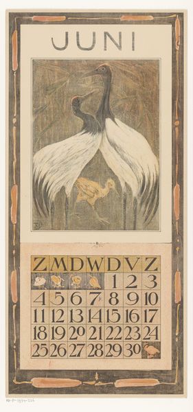 This is Theo van Hoytema’s calendar page for May, probably a lithograph, and it makes me think about colour. I love how the yellows and greens in the foliage create a wash of delicate hues behind the heads of the fowl. The way the colours are laid down so thinly, with a slight unevenness, makes them feel so alive. It’s like a conscious decision to let the imperfections shine. The physical texture of the paper underneath seems important. It's not about hiding the process but celebrating it. The registration is slightly off in the print, and this makes the colours vibrate, as if the image is moving slightly. It reminds me that art isn't about perfection, it's about the life that emerges in the making. It makes me think of Pierre Bonnard, of course, an artist who was similarly obsessed with the relationship of colour and surface.