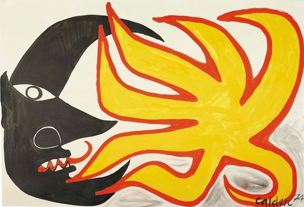Alexander Calder made this gouache painting entitled ‘Sourire’ in 1963. The work’s swirling shapes and playful color palette offer a vision of joy and lightness, but the piece's simplicity also represents a sophisticated commentary on abstraction. Made in France, ‘Sourire’ encapsulates a distinctly American approach to artmaking, one that values intuition over academic technique. Calder challenges us to reconsider the status of abstract art. By using a seemingly naive visual language, he questions the seriousness often associated with high art. The piece subtly subverts institutional expectations. Is it simply decorative, or does it offer a deeper engagement with form and emotion? To fully appreciate ‘Sourire,’ one might research the rise of abstract expressionism in the post-war United States and Europe. Ultimately, Calder’s work reminds us that art’s meaning is always shaped by the cultural and social context in which it is created and viewed.