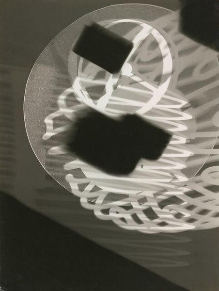 Editor: So, this is László Moholy-Nagy’s "Untitled (Positive)" rayograph, from around 1922-1924. It’s mostly geometric shapes and transparent forms created through light. It reminds me of x-rays, yet what everyday materials was Moholy-Nagy working with? What’s going on in this seemingly abstract image? Curator: It’s a fascinating work because it embodies the ethos of Constructivism through its production. Instead of traditional artistic tools, Moholy-Nagy employs everyday objects – likely glass, metal, perhaps even scraps – arranged directly on photographic paper and exposed to light. He completely bypasses the need for a camera or representational lens, challenging the conventional methods and notions around "art." Editor: So the process *is* the message, in a way? Was it about rejecting established artistic hierarchies, almost leveling the field? Curator: Precisely. This isn’t about depicting a scene or emotion; it's about the properties of light, shadow, and the textures of common materials. Think of it as a challenge to the traditional art world's focus on skillful painting or sculpting. Here, mass-produced objects and darkroom techniques become the tools of artistic creation. This shift elevates craft and industrial materials. Do you notice the interplay of positive and negative space, the ghostly traces of these placed objects? Editor: Yes, it’s like he is creating a new visual language using the very act of making an image, light as material. That makes me wonder, could you consider the social implications of photography democratizing the access to image creation? Curator: Absolutely! The readymade nature and process dismantles artistic skill as being tied to labour, creating an opportunity to redefine what art could be, how it's made, and who gets to make it. It forces us to consider art making not only as a physical, or artisanal, act, but conceptual. Editor: I never thought of it that way. I appreciate the way Moholy-Nagy’s experiment democratizes the art-making process. It makes me reconsider what’s art, what’s not and who gets to decide? Curator: Exactly! It shifts our focus to the act of production and material agency. Food for thought!