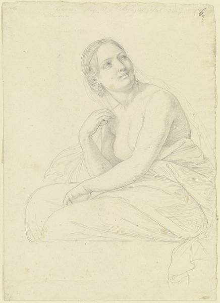 Editor: This is Adélaïde Labille-Guiard's "Study of a Seated Woman Seen from Behind (Marie-Gabrielle Capet)," made with charcoal and pastel in 1789. I'm struck by the intimacy of this piece, a glimpse of a private moment. What do you see here? Curator: Intimacy, yes! A stolen moment, perhaps, but also something much deeper. To me, it speaks volumes about the artistic relationships of the time, doesn't it? Labille-Guiard was a successful portraitist and here we see not a commission but an act of observation. Look at the textures created with charcoal, the delicate highlights that define form! I wonder, does it feel classical or rebellious to you? Editor: I think I feel more of a move toward classical than rebellious given the time period. There’s something very timeless in that profile view and draping. Curator: Precisely. Think about the echoes of antiquity so present in late 18th century France – those lines, that deliberate composition. But it’s Labille-Guiard’s handling of light, her intimate perspective, that sets it apart. How brave of her to offer us the averted face. As though, no matter what, there's some part of this person we can never know. What did the artist see in her subject that she so wanted to express this viewpoint? What do you think of that averted face, that knowing glance back over the shoulder? Editor: The fact that the subject isn’t gazing out, directly engaging the viewer definitely impacts my understanding. Her glance over her shoulder makes her seem knowing, maybe like she's hiding a secret? Curator: Secrets, possibilities, relationships; the magic of art isn't it? This artwork, and its secrets, remind us how perception shapes history. Editor: It's definitely a much more thoughtful piece than I originally gave it credit for. Thank you!