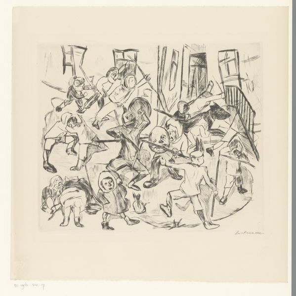 Curator: Well, this graphite drawing immediately strikes me as possessing a sense of somber reflection. The monochromatic palette and sketchy lines contribute to a feeling of contemplative seriousness. What are your thoughts? Editor: That feeling is quite deliberate. We’re looking at "Study for 'After Blake's Job'," a 1966 piece by Benton Spruance. Spruance was deeply engaged with social justice and often addressed existential questions in his art. This drawing directly references William Blake's illustrations of the Book of Job. Curator: Ah, that explains the distinct symbolic language woven throughout. Notice the figures gathered, perhaps mourning, but there's also a sense of procession or even judgement in their postures. It clearly aims to be more than just illustrative; it invites interpretation. Editor: Precisely. Blake’s work already tackles themes of suffering, faith, and redemption. By engaging with it directly, Spruance invites us to consider how these themes resonate within the context of the 20th century, marked by its own intense periods of upheaval and doubt. Curator: It's a fascinating dialogue across time and artistic vision. Spruance, deeply rooted in his Quaker faith and convictions, perhaps saw parallels between Job's trials and the modern human condition, making the artistic tradition into a sort of historical conversation. Editor: Yes, and I see symbols here – beyond just Blake. There is that horse near a rose…perhaps the Apocalypse linked with rebirth. But there are multiple bodies in apparent distress. Does this reference Job or his own reckoning with more modern examples of human misery and struggle? The loose graphite evokes more a dream than solid truth. Curator: This study becomes a meditation, really. A bridge between Blake’s visionary intensity and Spruance's grappling with the complexities of his own era. Editor: Precisely, Benton Spruance takes inspiration to find his own voice by grappling with shared ideas across time. Curator: It asks us what we learn from both their trials, imagined and real, as a constant feature of human experience. Editor: Right, by appropriating visual vocabulary Spruance encourages a deep dive into questions of morality.