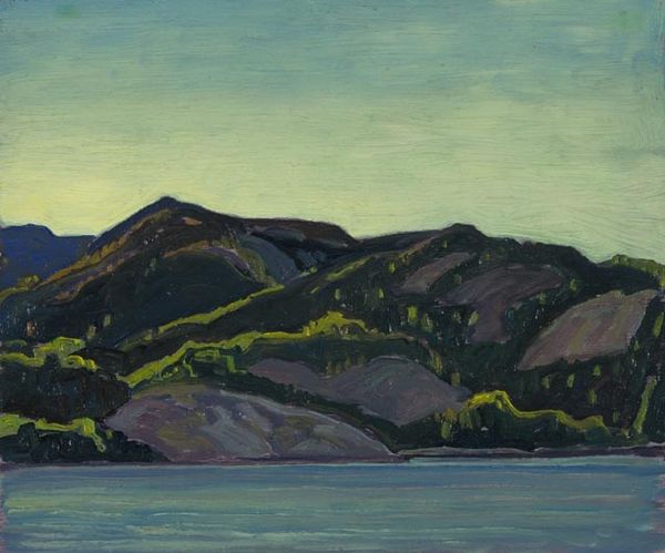 Editor: So this is "Landschaft III" by Karl Wiener, painted in 1943 using tempera. I find the color choices really interesting; the pinks and yellows in the sky create this really dreamlike quality. How do you interpret this work? Curator: The landscape itself is a powerful symbol. Landscapes are rarely just pretty pictures. Consider how, especially in 1943, the landscape could become a site of cultural memory, a reminder of home and heritage, especially potent during times of displacement or conflict. Do you notice the church spire, almost hidden? Editor: I do, now that you mention it! It almost blends in with the hillside. Curator: Churches have long been powerful symbols, offering solace, stability, and representing shared beliefs. Its diminutive scale here could signify a fading influence or a yearning for simpler times amidst upheaval. Consider the palette too, the way the artist deploys intense hues and blocks of color to construct a subjective reality rather than a literal depiction. Do these colors evoke any emotional responses in you? Editor: I guess it feels less like a specific place and more like a feeling, like longing? Curator: Precisely! The naive art style only heightens that dreamlike quality, transforming the painting into something timeless, resonating across different cultural memories. Its seeming simplicity hides layers of complex emotional and cultural significance. Editor: That’s fascinating. I never would have considered the historical context like that, about landscape as memory and symbol. Curator: Exactly. By understanding these visual symbols, we see how deeply intertwined history, culture, and personal emotions are, brought to life in this landscape.
