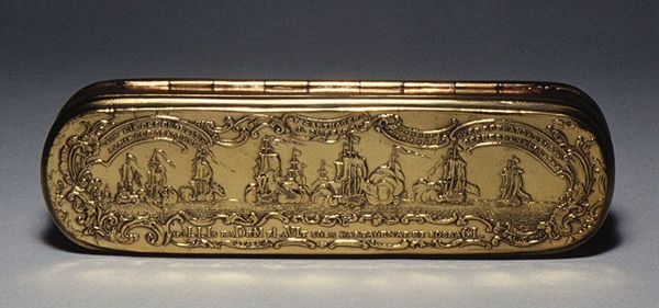 This small box was crafted by Wilhelm Krüger sometime between 1680 and 1756. The lid is a black ground with gilt figures that seem to depict life in the colonies, complete with palm trees, figures in period clothing, and a building. The sides present another set of symbols: palm trees again appear, alongside rabbits and a simple house. Palm trees evoke ideas of paradise, while rabbits symbolize fertility, and the house is a symbol of shelter and security. Yet, the juxtaposition of these symbols creates a tension. The palm tree, historically associated with triumph and eternal life, is here set against the rabbit, a creature often associated with vulnerability and mortality. Think of Botticelli’s Venus and how it speaks to the human spirit's resilience. Just as Botticelli drew on classical antiquity to express Renaissance ideals, Krüger uses these symbols, which echo through history, to evoke something ineffable. These images are cultural memories, constantly reshaped by the subconscious. We see them, interpret them, and add our own experiences to their story. These symbols are never truly still, continually surfacing and transforming in the currents of time.