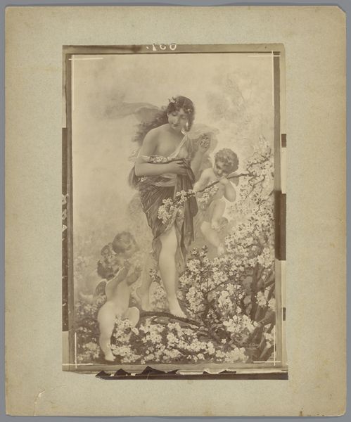 Célestin Nanteuil created this lithograph titled "Les Artistes Contemporains" whose dimensions are approximately 13 by 9 inches. The print plunges us into a somber yet celebratory scene, defined by stark contrasts in light and shadow. The ethereal figure of a winged woman dominates the composition. The arrangement of elements such as the names of revered artists carved onto a stone tablet, the classical busts, and the cherubic figure inscribing upon it, suggests a hierarchy of artistic achievement. These elements create a visual discourse on artistic legacy. The structure offers us a semiotic system, where each symbol—the angel, the tablet, the artists' names—contributes to a larger narrative about the nature of art and remembrance. Notice how Nanteuil challenges fixed meanings through the juxtaposition of classical and romantic imageries. The lithograph invites continuous interpretation of its cultural and philosophical underpinnings.